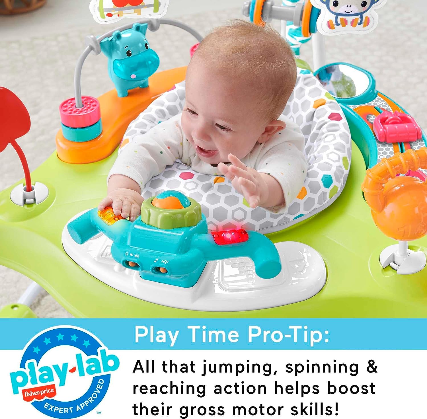 Centro de atividades infantis com tema de academia com música, luzes e brinquedos de “treino” prontos para diversão saltitante
