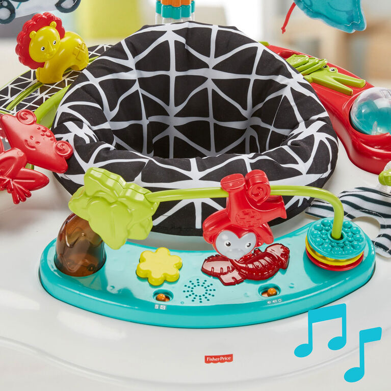 Seu bebê vai adorar explorar toda a diversão prática deste centro de atividades Fisher-Price Animal Wonders Jumpero. O assento giratório dá aos pequenos acesso de 360 graus a brinquedos, atividades e amigos animais, incluindo uma bola de rolo, barra de contas, teether, espelho e muito mais. À medida que seu pequeno explorador descobre toda a diversão, cada salto é recompensado com música, luzes e sons divertidos.